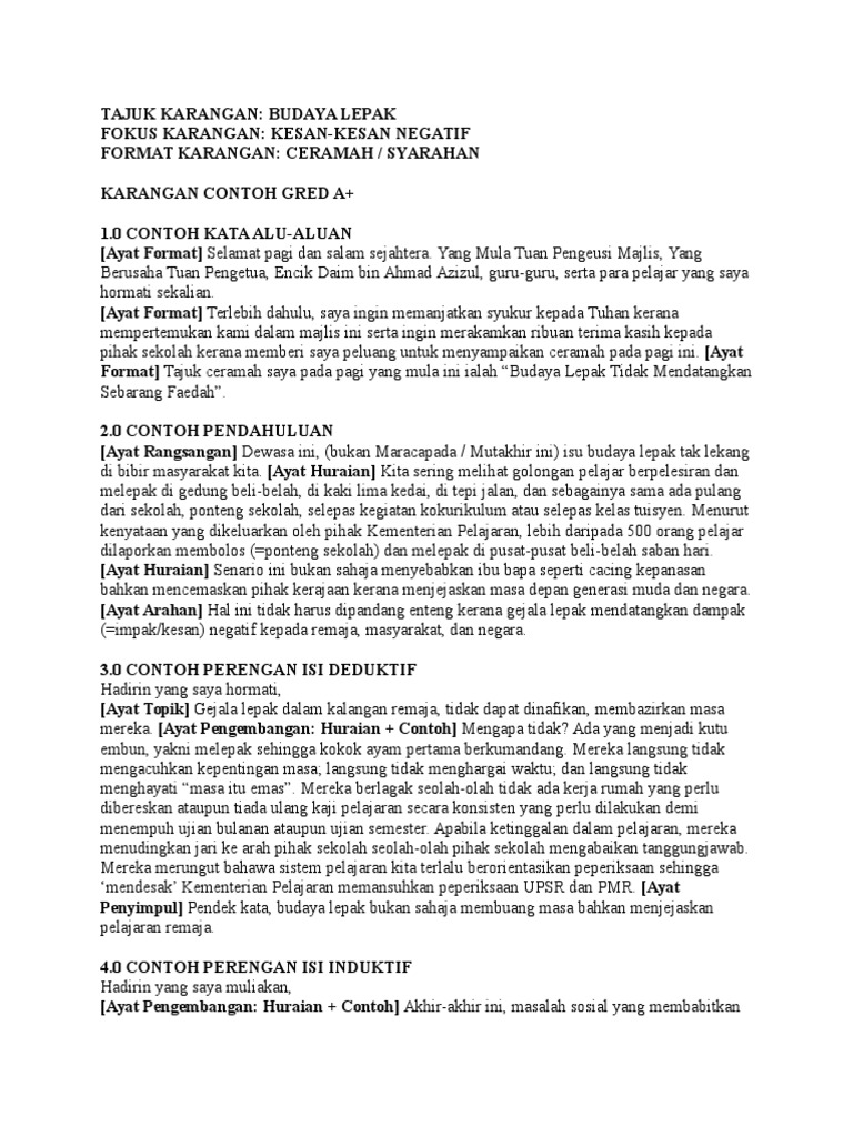 Budaya Negatif Contoh Karangan